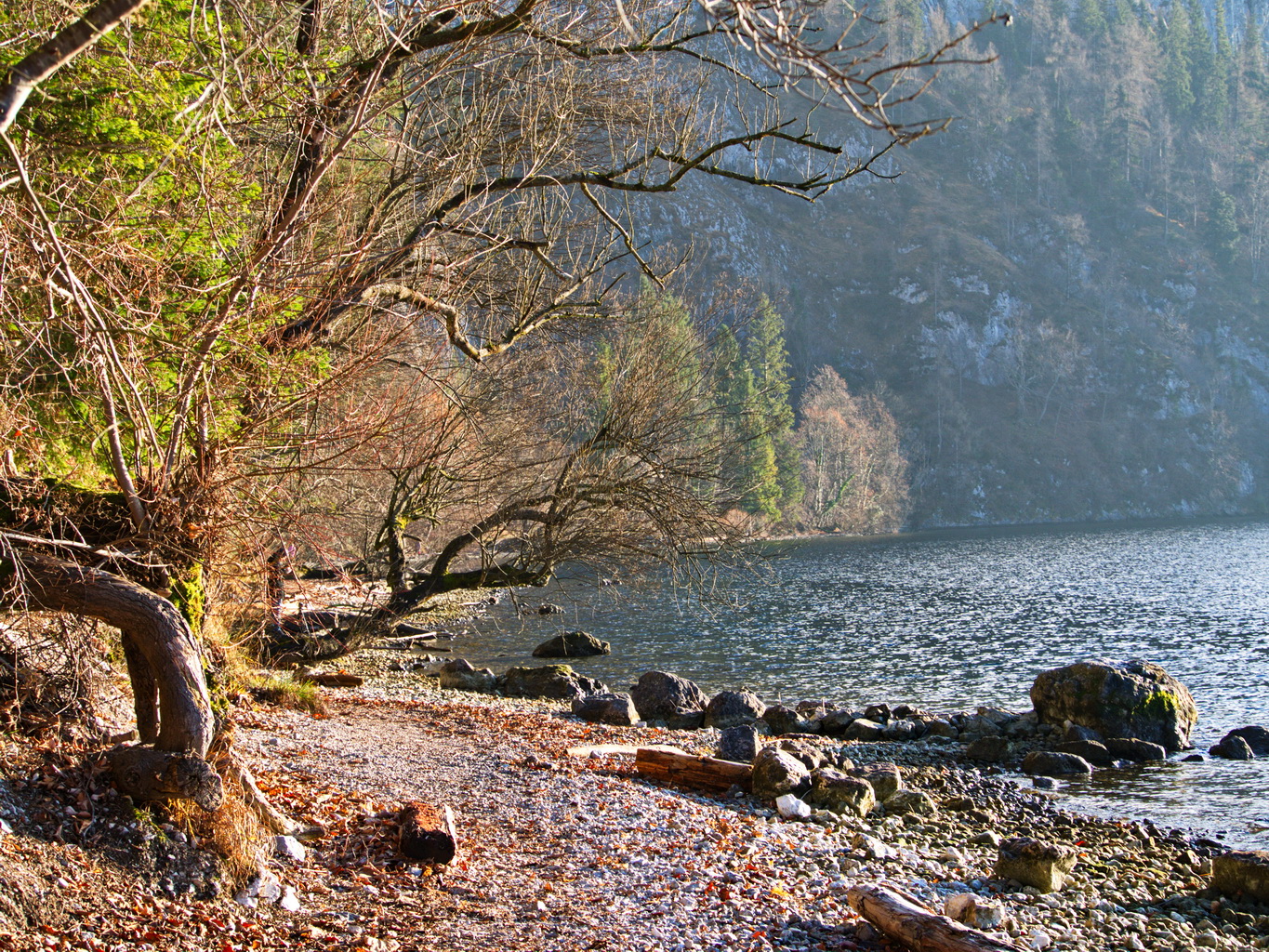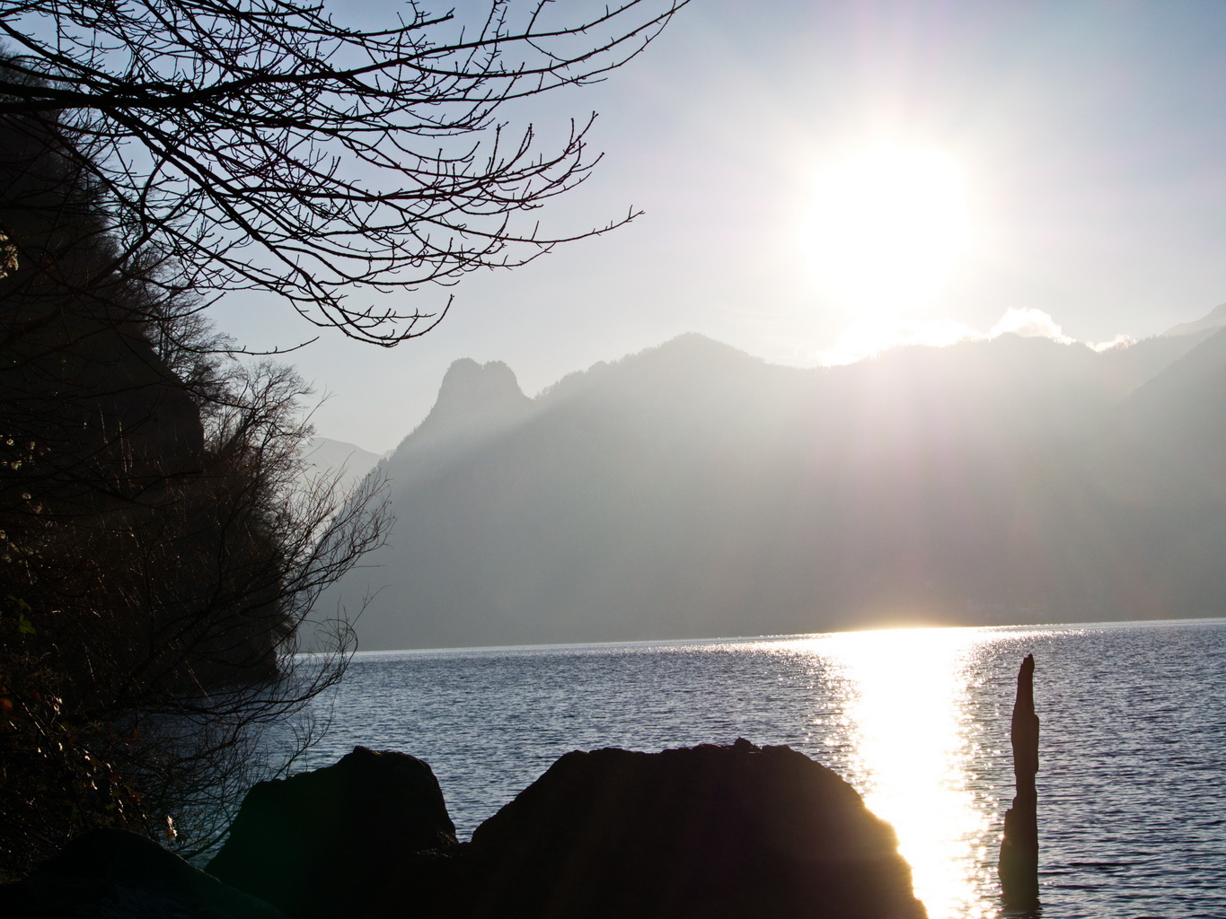 After a fortnight of fog or dull and grey weather, yesterday’s walk has been very rewarding. It has been very cold but the sunlight and our brisk 3-hours-walk from the north-western to the eastern banks of the deep lake kept us warm enough. Enjoy…